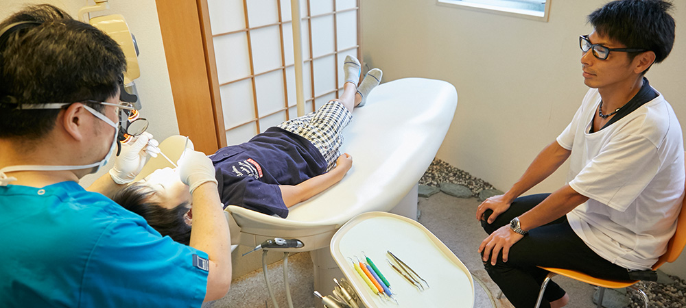 お子さんが治療を受ける際には保護者の方も同席頂くことが可能です。また歩行が困難な方やお年寄りの方につきましても、付き添い可能となっております。ご家族の方に治療を見守って頂くことにより、患者様の安心につながりますので、当院ではこのような柔軟な対応をさせて頂いております。