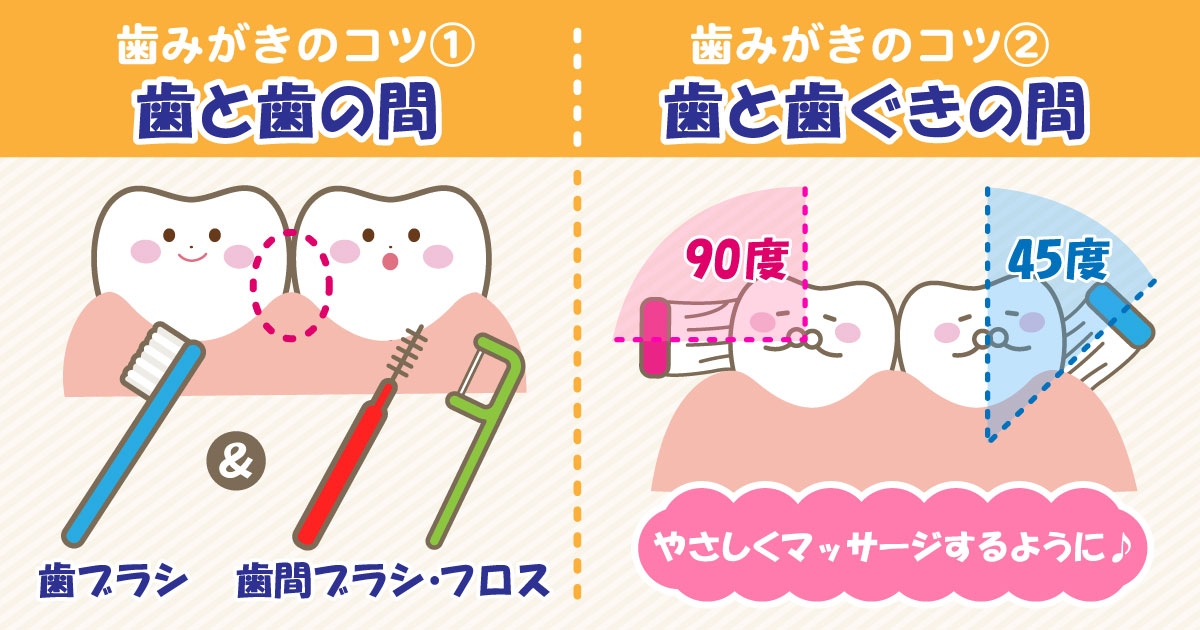 歯や歯ぐきの状態によって、歯ブラシを45度、